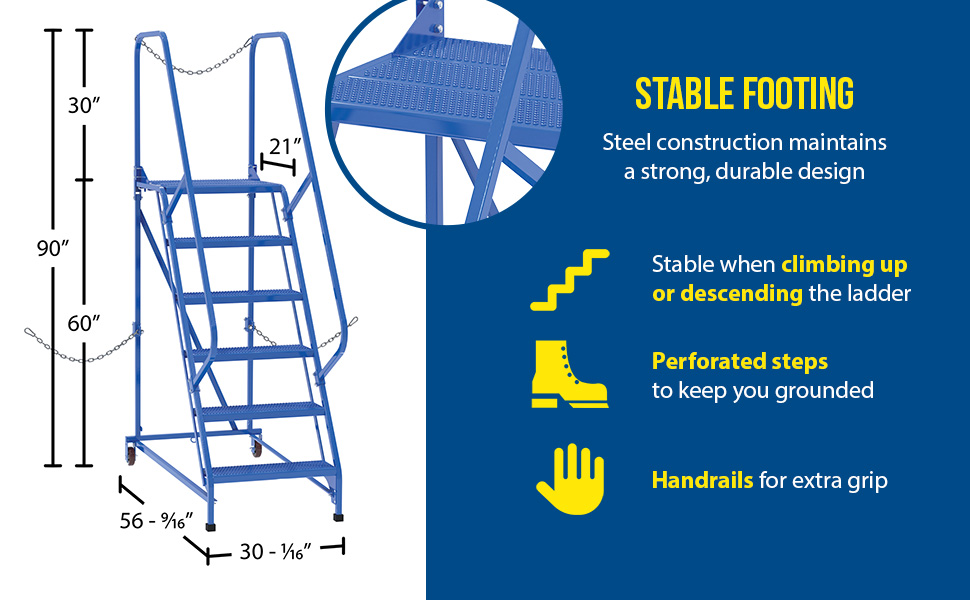 LAD-STAL-6-P LAD-STAL-6-PSteel Semi-Trailer Access Ladder 58 Degree 6 Perforated 24 In. Step Width 350 Lb. Capacity BlueUniform Capacity (lb.): 350