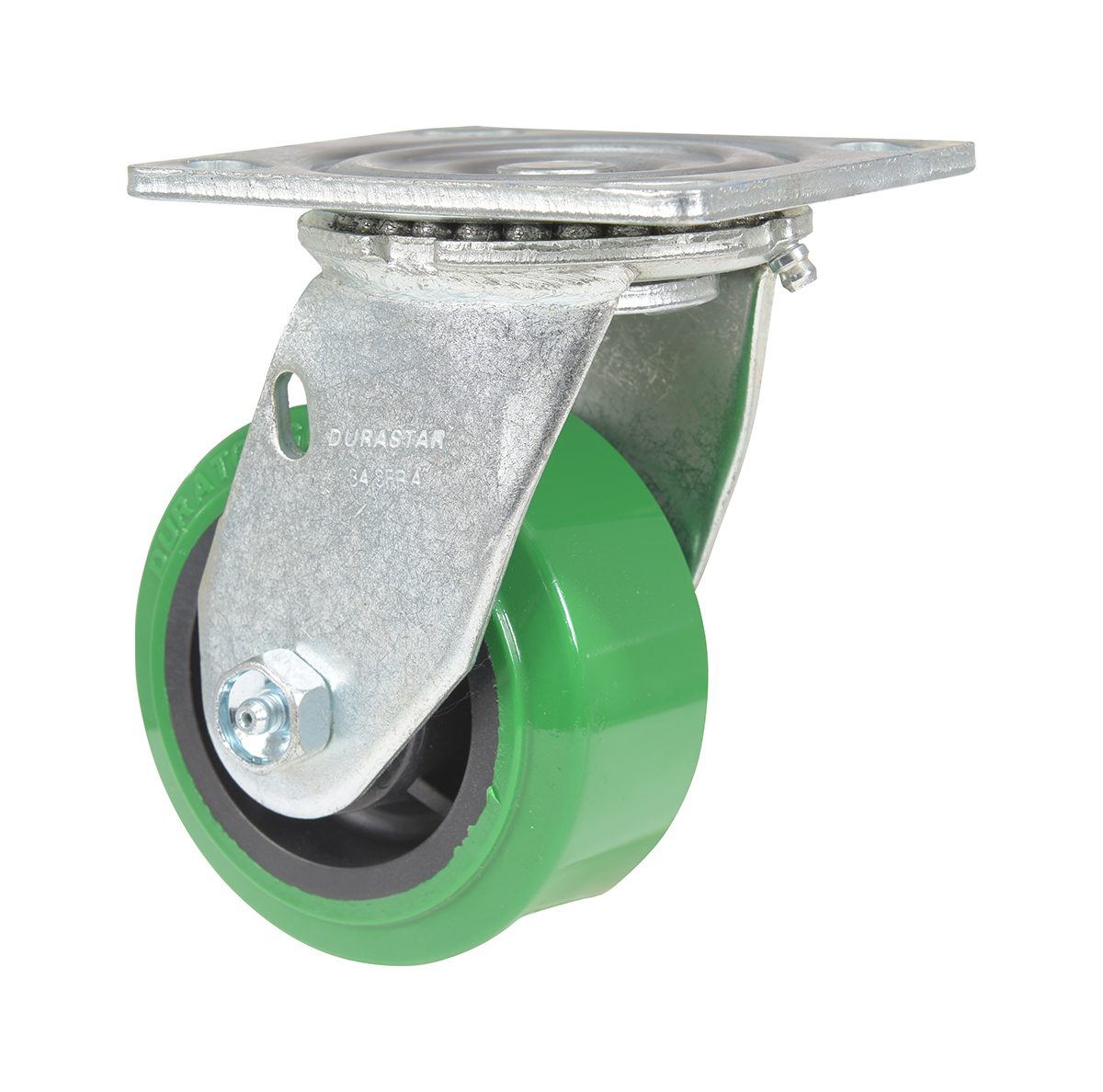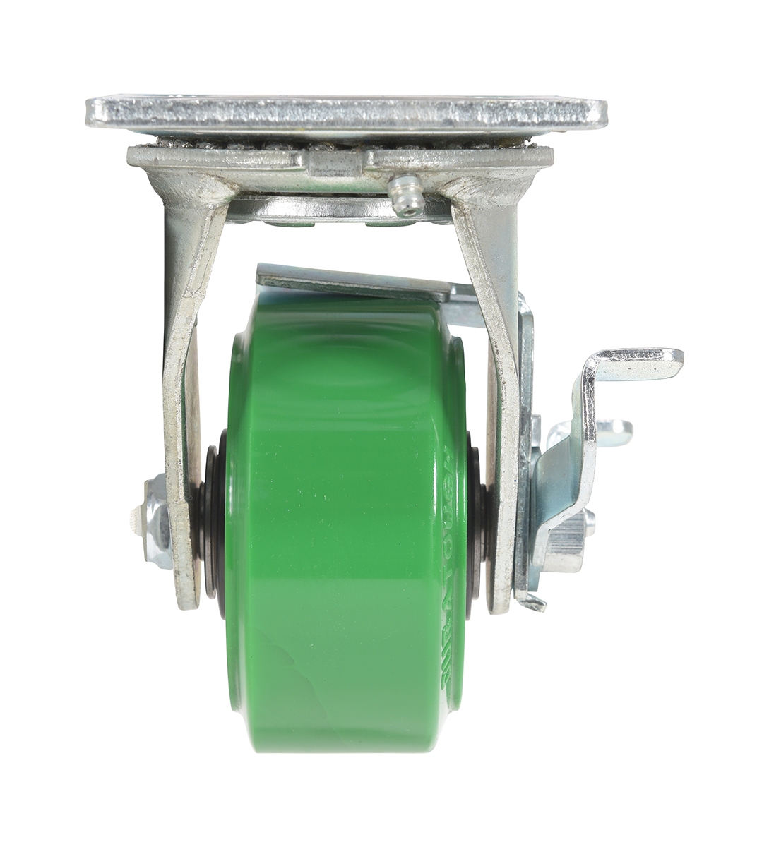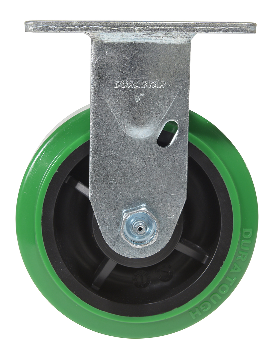 Made with 100% pure polyurethane tread. This caster is a great upgrade for standard polyurethane. Designed using a new liquid cast flow fusion that ensures a 100% mechanical bond to core and "zero" trapped air. It has a high resistance to debris and most chemicals. The proprietary tread provides good floor preservation, and has a longer life performance than standard polyurethanes. Green tread color. 90-95 shore a. Wheel center is constructed of polyolefin.