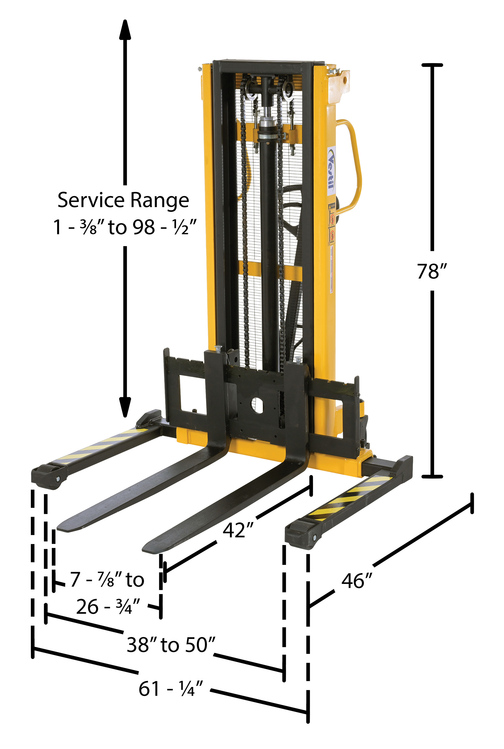 VHPS-550-AA-F72 VHPS-550-AA-F72Steel Manual Stacker Adjustable Forks/Legs 550 Lb. Capacity Black / YellowUniform Capacity (Lbs.): 550