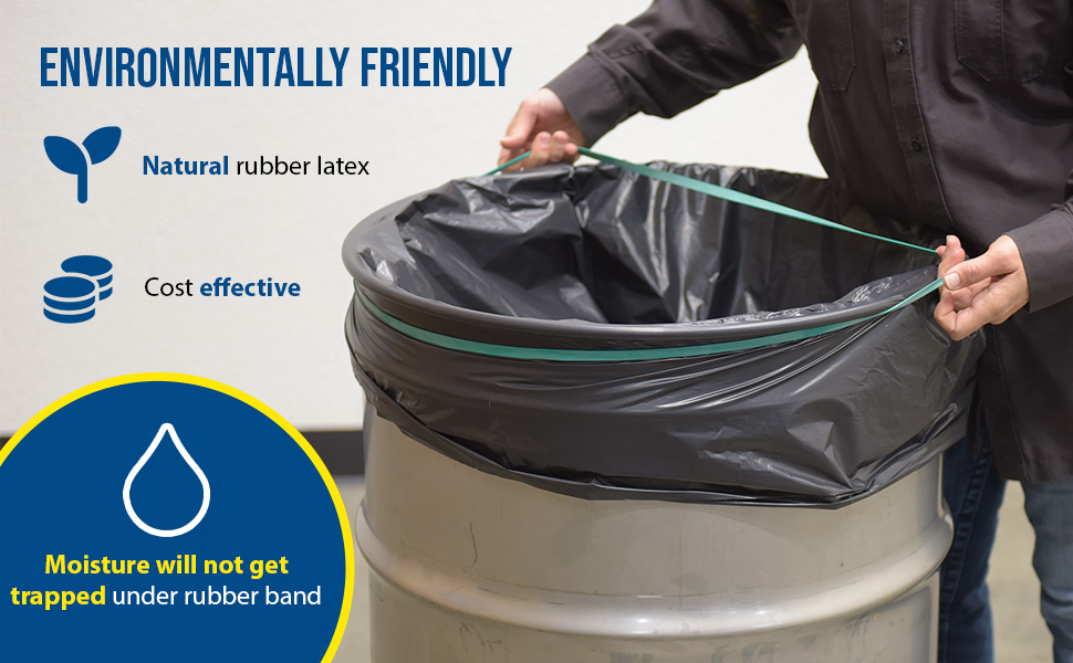 The Pallet Band, model BAND-92, minimizes carton shifting to reduce product damage of pallets in transit. Easy to use without any need for special equipment. Unit is cost effective and environmentally friendly. Moisture will not get trapped under rubber band. Packaged 50 pieces per carton. The Drum Band, model BAND-34, is used to help secure drum liners. Unit is cost effective and environmentally friendly. Packaged 50 pieces per carton.