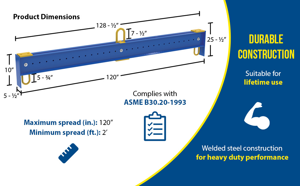 SBM-BFB-100-10 SBM-BFB-100-10Steel Adjustable Spreader Beam 128-1/2 In Length 10,000 Lb. Capacity BlueUniform Capacity (lb.): 10,000