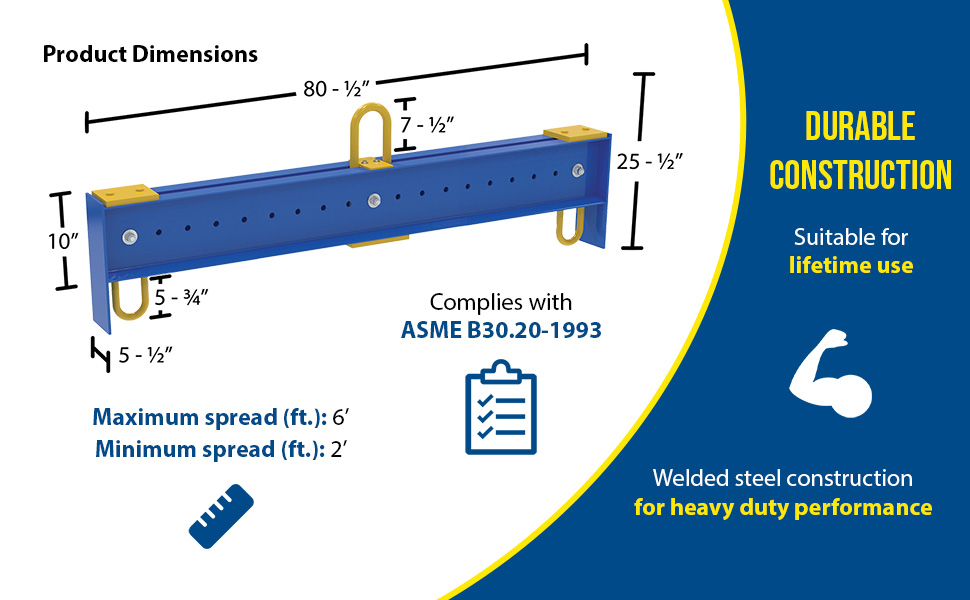 SBM-25 SBM-25Steel Adjustable Spreader Beam 78 In. Length 2,500 Lb. Capacity BlueUniform Capacity (lb.): 2,500