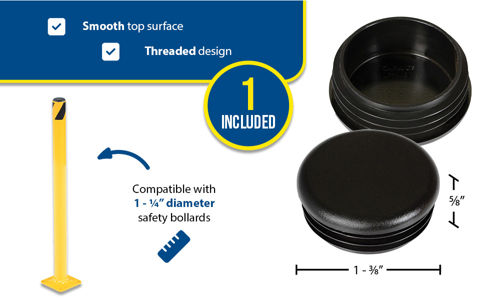 BOL-CAP-1.75-P BOL-CAP-1.75-PPlastic Bollard Cap Replacement For Schedule 40 Steel 1-1/4 In. Pipe BlackCap Material: Plastic