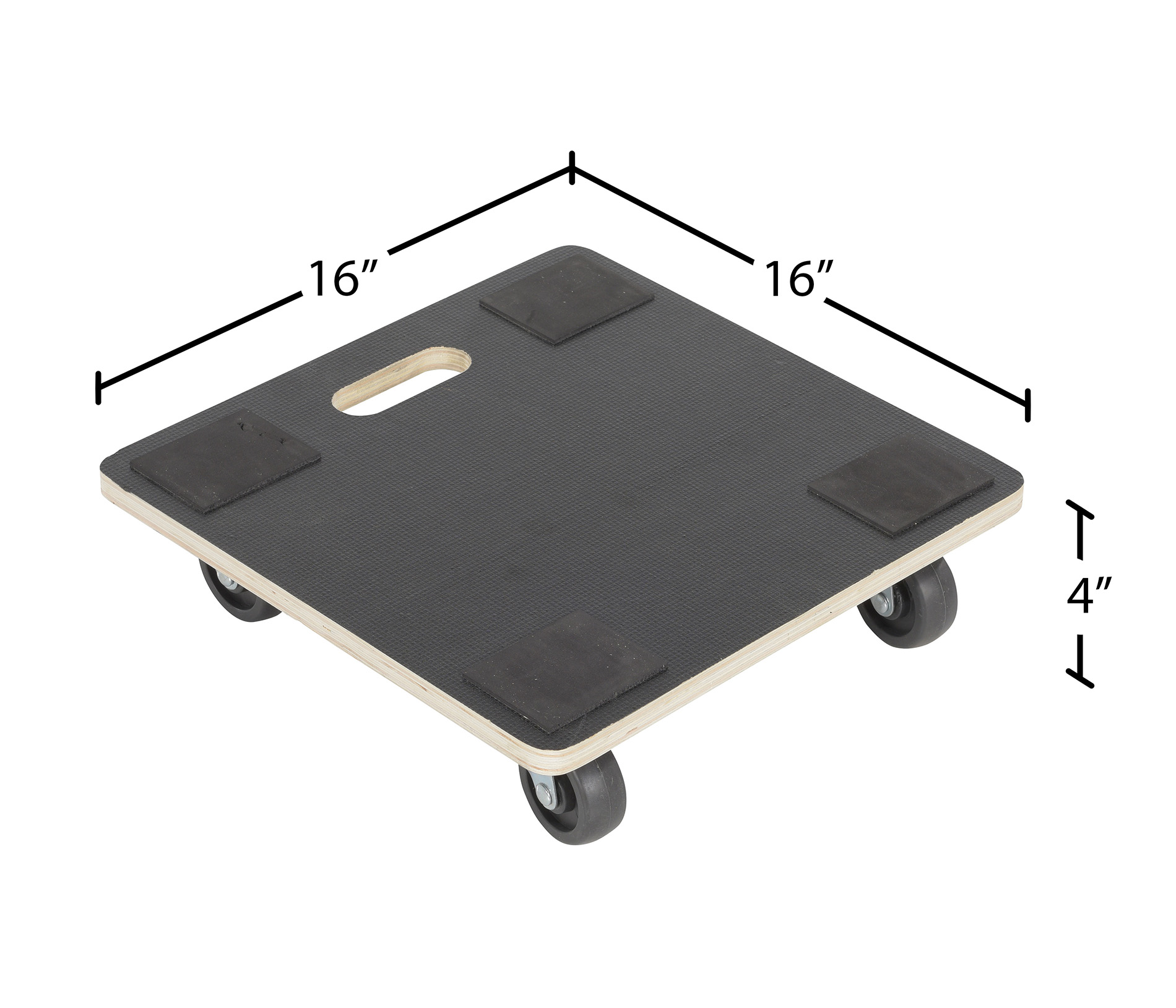 Hardwood Square Dolly Deck 16 In. x 16 In. x 4 In. 400 Lb. Capacity Black