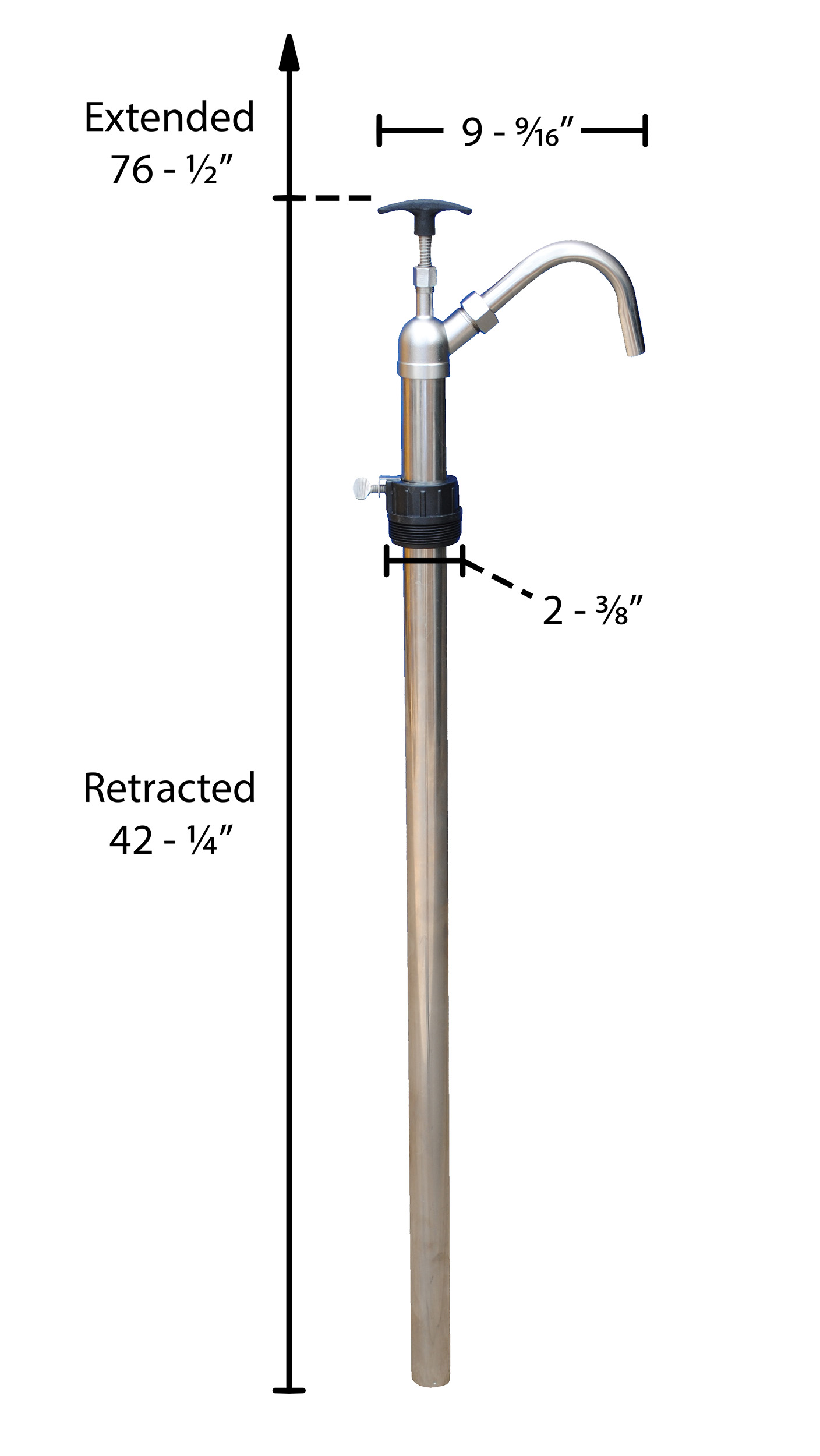 This manual drum pump is designed for dispensing and transferring liquids out of fifty-five (55) gallon drum. This hand pump is constructed of 316 stainless steel.