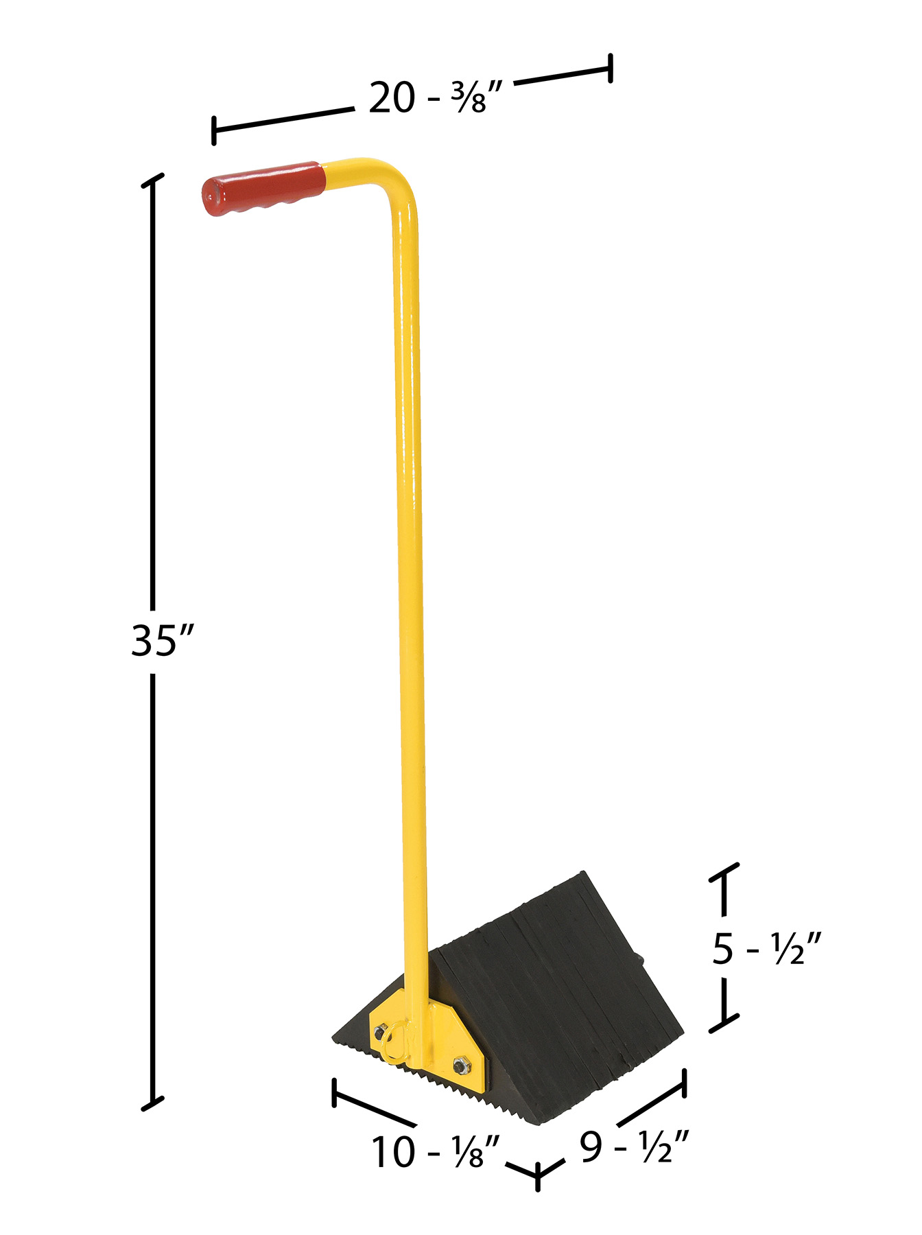 Laminated Rubber Wheel Chock with Ergonomic Handle 10-1/8 In. x 20-3/16 In. x 34-15/16 In. Black / Yellow