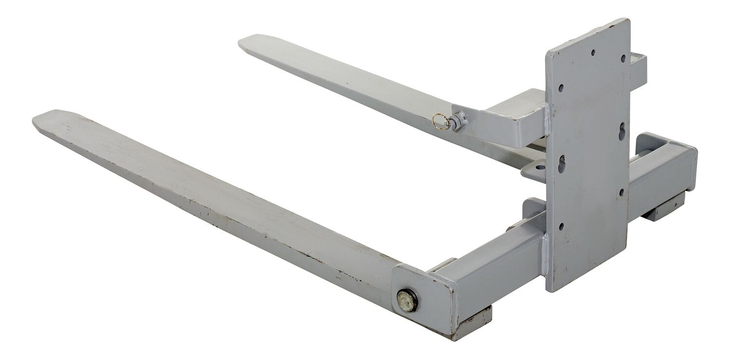 Steel Counter Balanced Power Lift Adjustable Forks 42" Fork Length Attachment 600 Lb. Capacity GraySometimes the entry point on pallets can be spaced differently, making it awkward if your forks are in a fixed position. Thankfully there is an easy solution. The adjustable fork attachment! The forks can be maneuvered to a position that better fits the users’ needs depending on each situation. Each fork lays flat making it perfect for lifting and maneuvering pallets or skids!