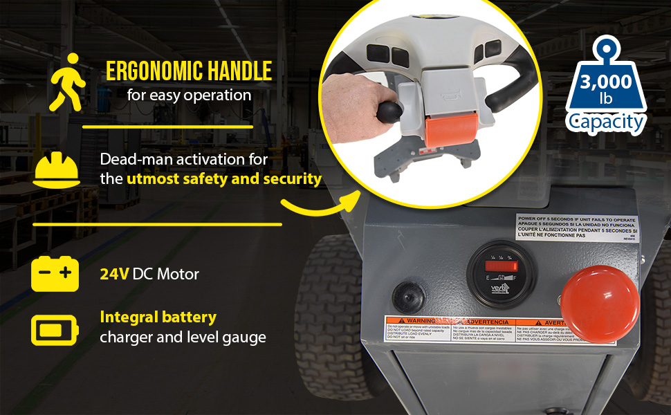 E-TUG-30 E-TUG-30Electric Powered Tugger with 3000 Lb. Pull Capacity Yellow/BlackUniform Pull Capacity (lb.): 3,000