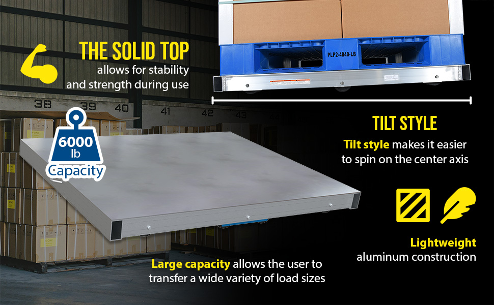 DOL-ST-4848-6T DOL-ST-4848-6TAluminum Pallet Dolly with Solid Top Tilt 48 In. x 48 In. 4000 Lb. Capacity SilverUniform Capacity (lb.): 4000