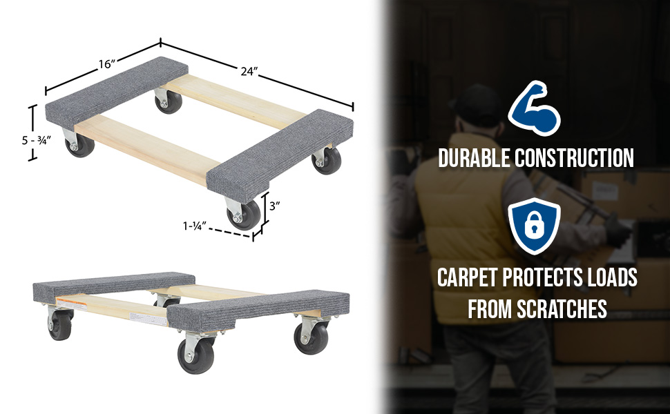 HDOSC-2436-12 HDOSC-2436-12Hardwood Carpeted Dolly 36 In. x 24 In. x 6-3/4 In. 1200 Lb. Capacity TanUniform Static Capacity (lb.): 1,200