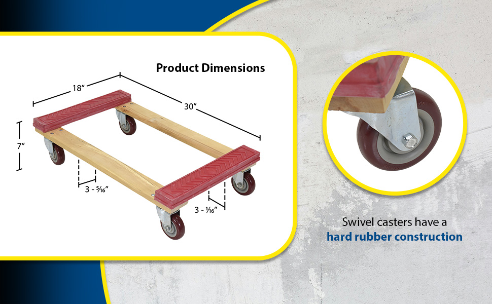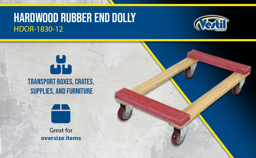 HDOR-1830-12 HDOR-1830-12Hardwood Dolly Rubber Ends 30 In. x 18 In. x 7 In. 1200 Lb. Capacity TanUniform Static Capacity (lb.): 1,200