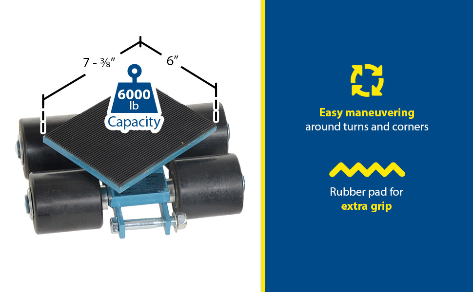 | Steel Adjustable Machinery Skates 10-1/2 In. x 12-13/16 In. x 4-3/8 In. 6 Ton Capacity Blue | Uniform Static Capacity (tons): 6 Roller Material: Nylon | 50 |