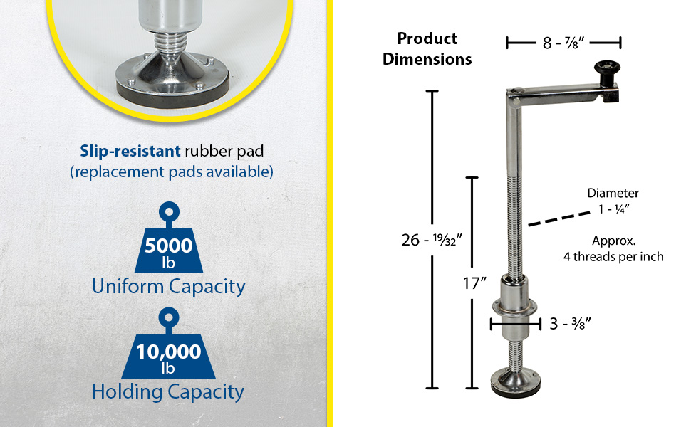 LJ-17 LJ-17Steel Leveling Jack 26 In. 5000 Lb. Capacity SilverUniform Capacity (lb.): 5,000