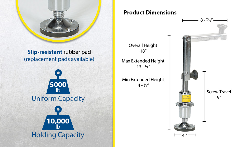LJ-9 LJ-9Steel Leveling Jack 18 In. 5000 Lb. Capacity SilverUniform Capacity (lb.): 5,000