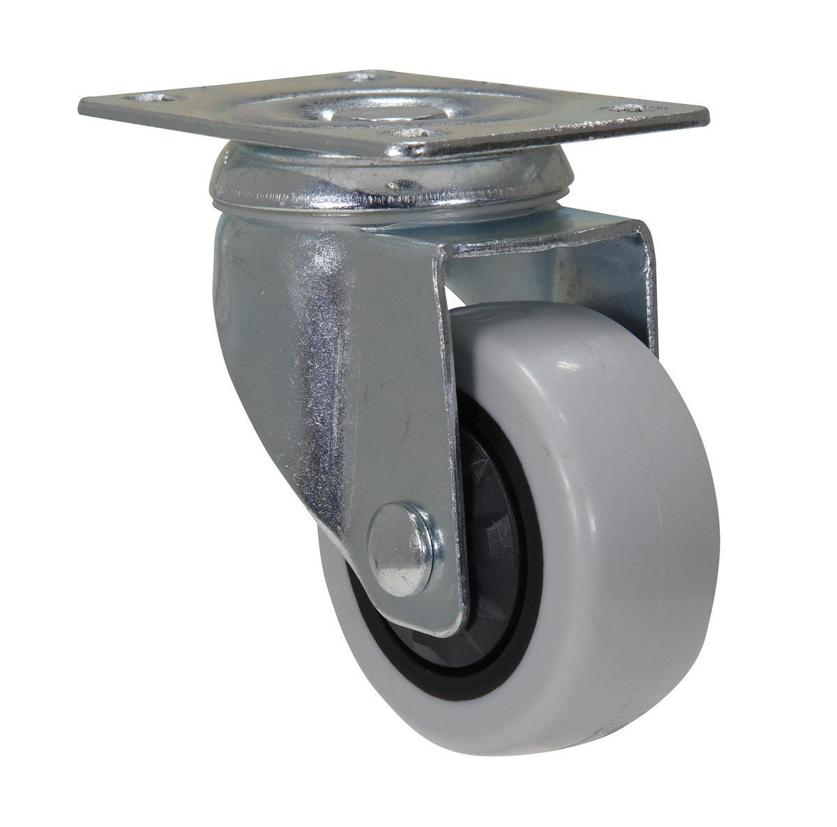 Polypropylene casters are great for a variety of industries with their limited rolling resistance and ability to withstand rough environments. The construction is non-staining and corrosion resistant to a variety of outside substances. Swivel design allows the user to maneuver and change directions instantaneously. Wheel core is constructed of polypropylene. 100 +/-5 Shore A. Made in China.