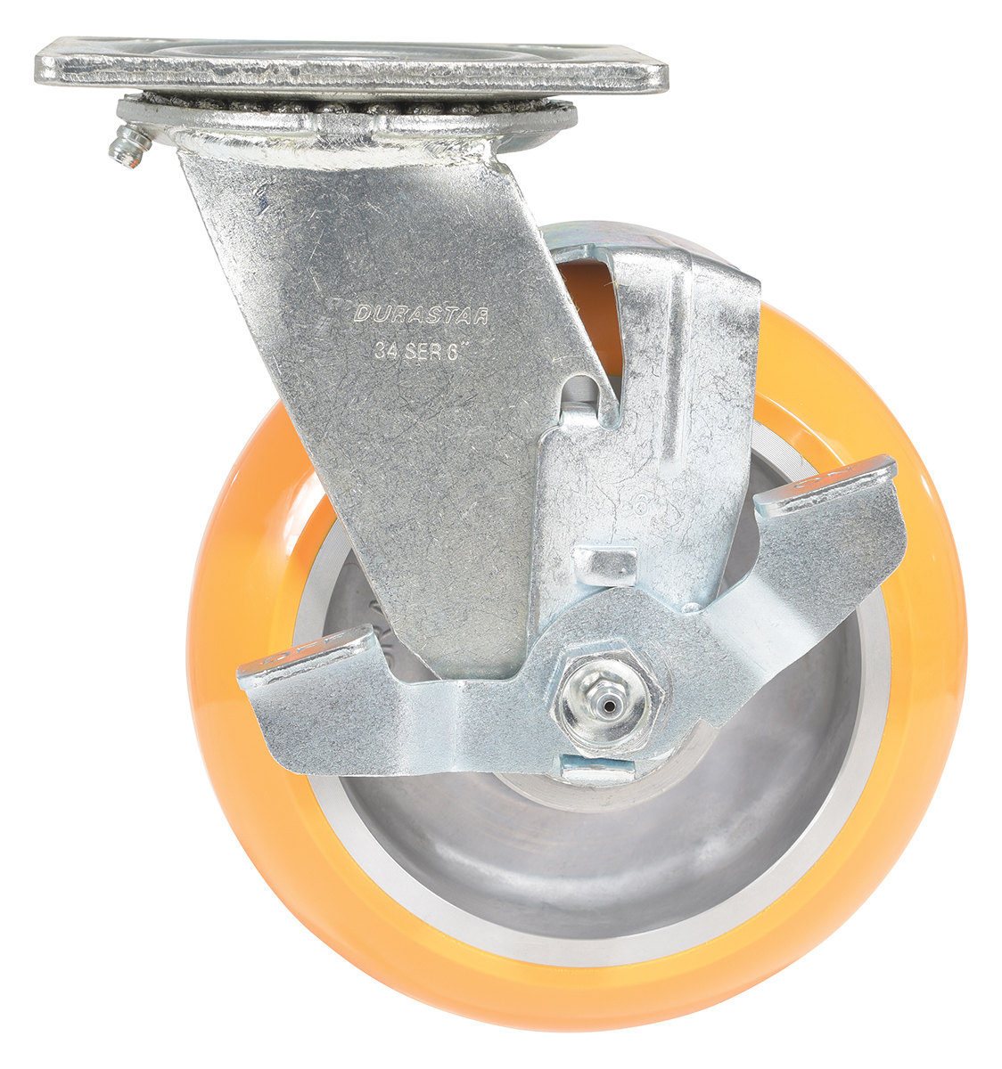 Constructed of proprietary, high-grade elastic polyurethane and coupled with 6203 premium precision ball bearings for added strength and durability. The upgraded tread provides a longer life, reduces the force required for movement, rejects debris, and offers exceptional floor preservation. Orange tread color. 85 shore a. Wheel core is constructed of high-grade, light-weight, water resistant aluminum.