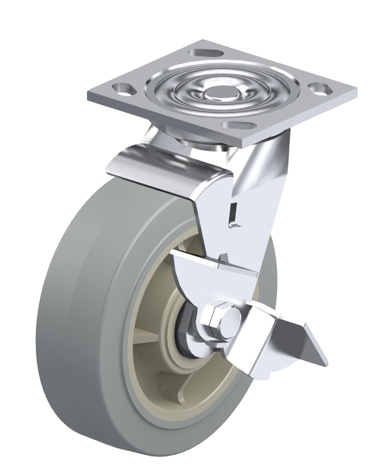 BlickleThis thermoplastic rubber caster is designed for smooth, quiet operation. With floor protection always a must, the non-marking rubber tread molded to a durable core provides just that and more! Not only does it minimize noise, it offers outstanding shock absorption. Perfect for use in medical, industrial, and commercial settings, this caster ensures long lasting graceful maneuverability.