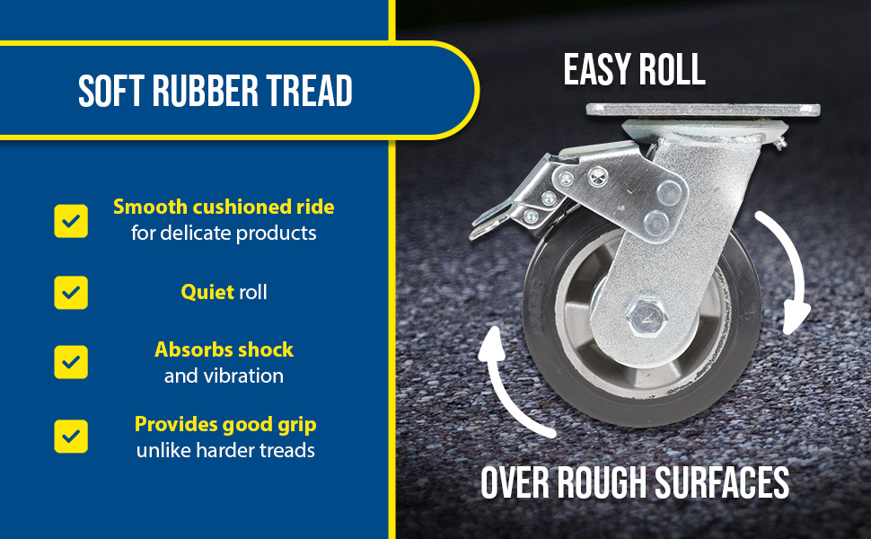 Soft rubber provides a smooth cushioned ride for delicate products. combined with a lightweight, rust resistant aluminum core, this caster is great for wet, outdoor environments.