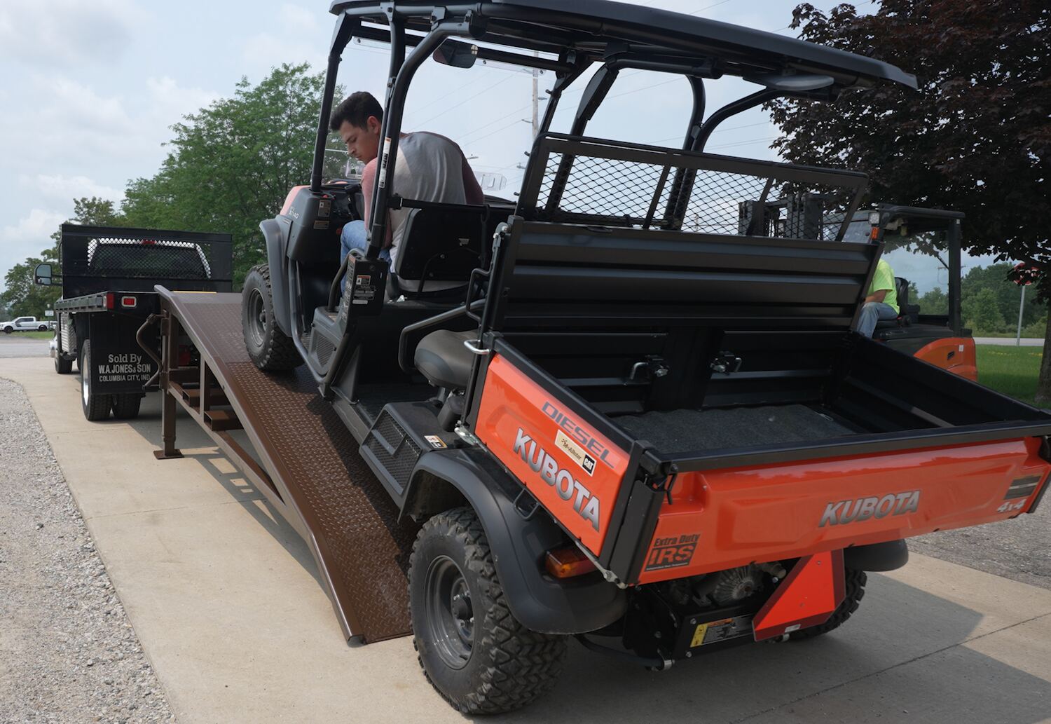 A Mini yard ramp is the perfect solution for loading and unloading heavy loads. With a steel construction, the ramp can endure weights up to 5,000 lbs. The height may be adjusted to fit the users needs with a lowered height of 36" and a raised height of 60". A painted brown finish.