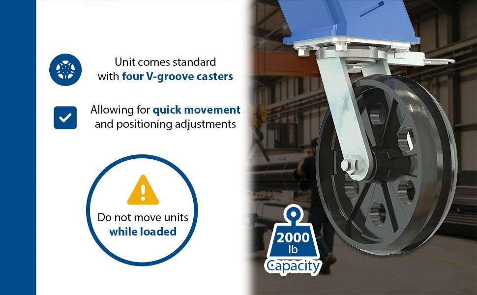 AHSN-2-15-7-VG AHSN-2-15-7-VGSteel Knock-Down Adjustable Height Gantry Crane with V-Groove Cast Iron Casters 15 Ft. Wide x 7 Ft. Max Usable Height 2,000 Lb. Capacity BlueUniform Capacity (lb.): 2,000