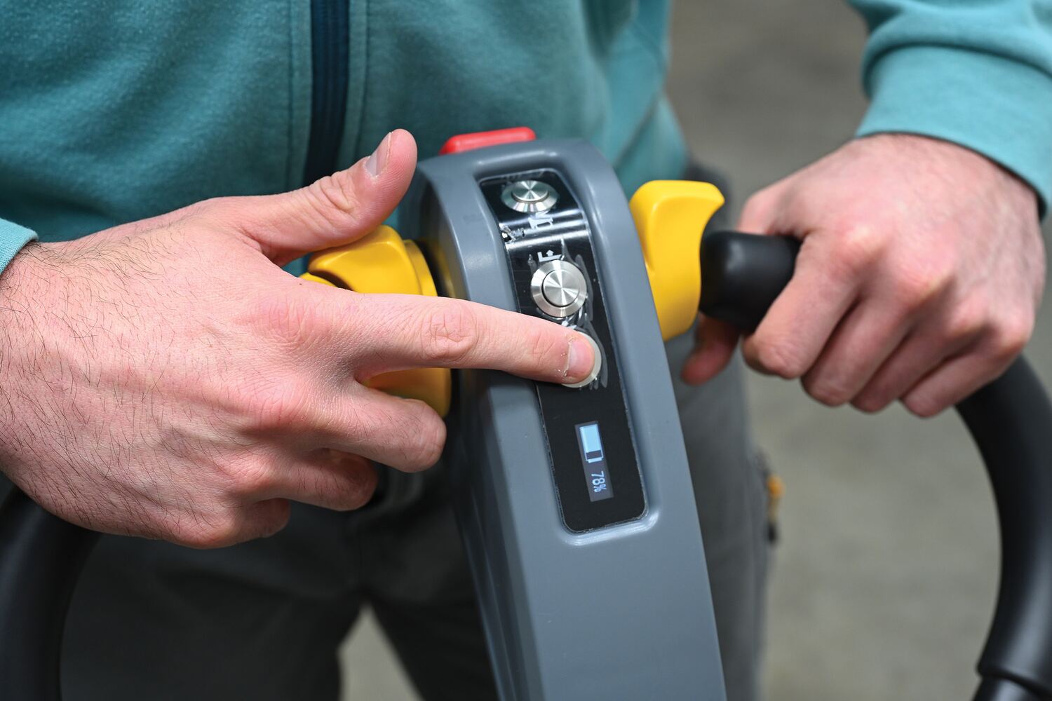 • Emergency stop button improves worker safety