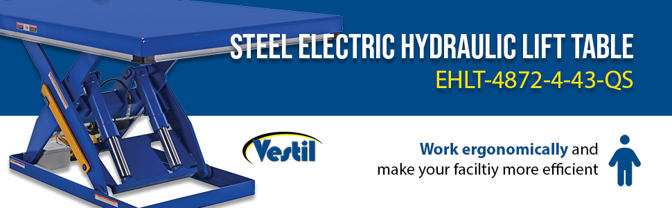 EHLT-4048-4-43-QS EHLT-4048-4-43-QSSteel Quick Ship Electric Hydraulic Lift Table 40 In. x 48 In. 4000 Lb. Capacity BlueUniform Capacity (lb.): 4,000