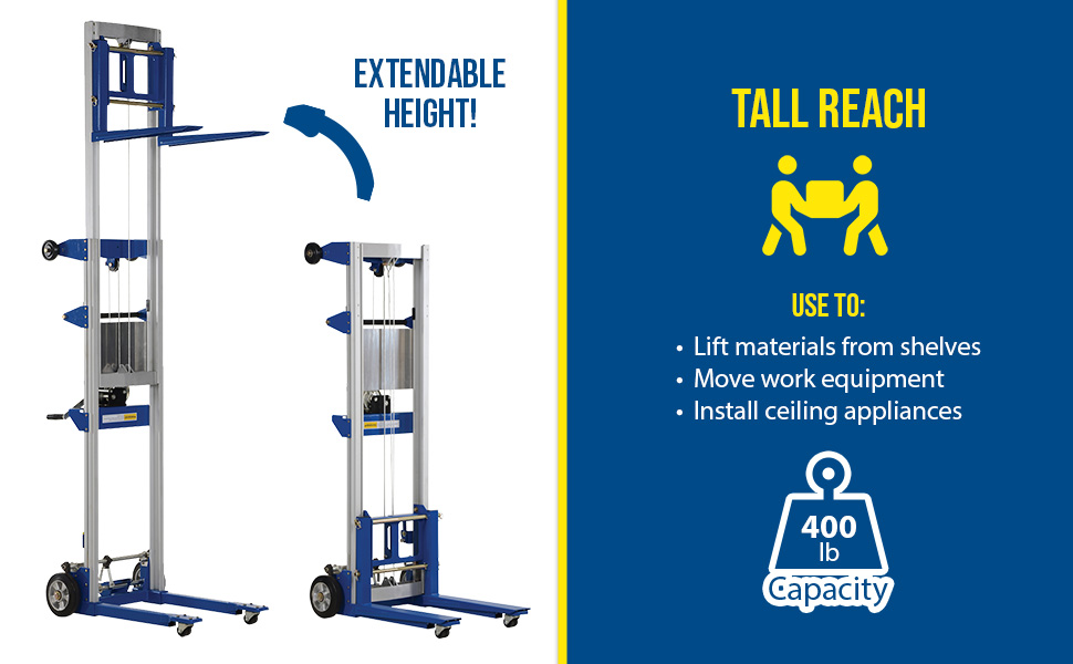 A-LIFT-S-HP A-LIFT-S-HPAluminum/Steel Adjustable Straddle Manual Hand Winch Lift Trucks 400 Lb. Capacity Silver/BlueUniform Capacity (lb.): 400