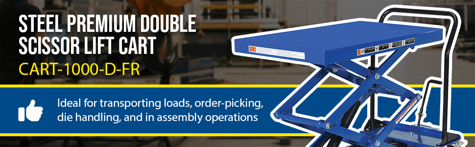CART-1000-D-FR CART-1000-D-FRSteel Premium Double Scissor Lift Cart with Foot Release 24 In. x 40-1/2 In. 1000 Lb. Capacity BlueUniform Capacity (lb.): 1000