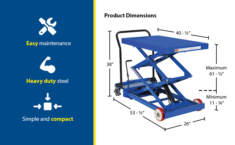 CART-600-S-FR CART-600-S-FRSteel Heavy Duty Premium Scissor Cart 19 In. x 33 In. 600 Lb. Capacity BlueUniform Capacity (lb.): 600