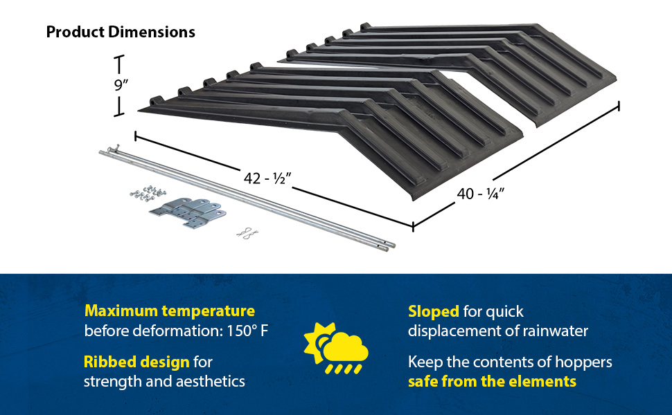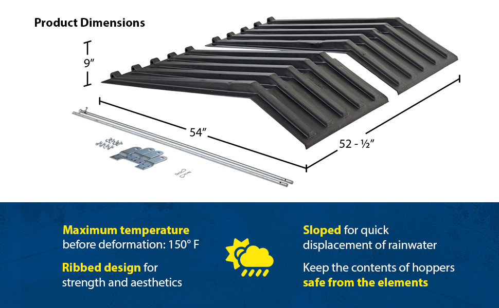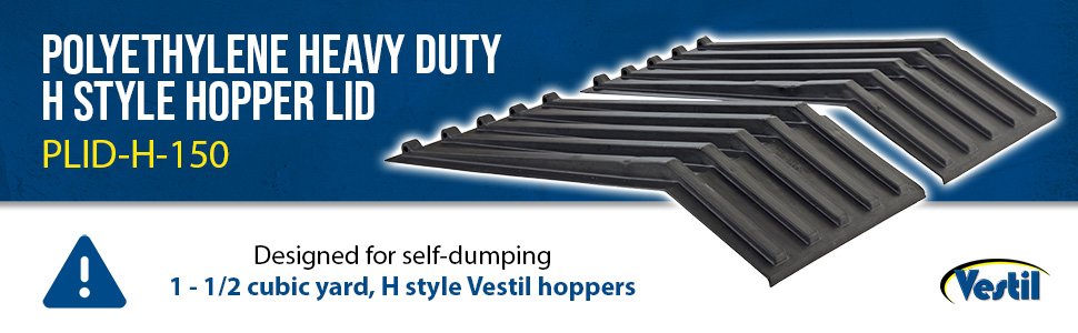 PLID-H-150 PLID-H-150Polyethylene Heavy Duty H Style Hopper Lid (Use with 1-1/2 Cubic Yard Hoppers) BlackUse With (cu. yrd.): 1-1/2