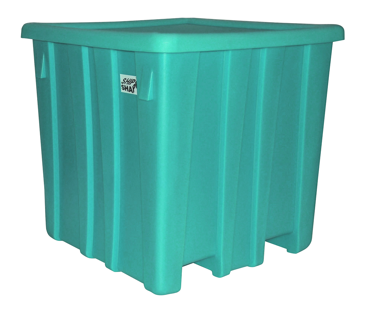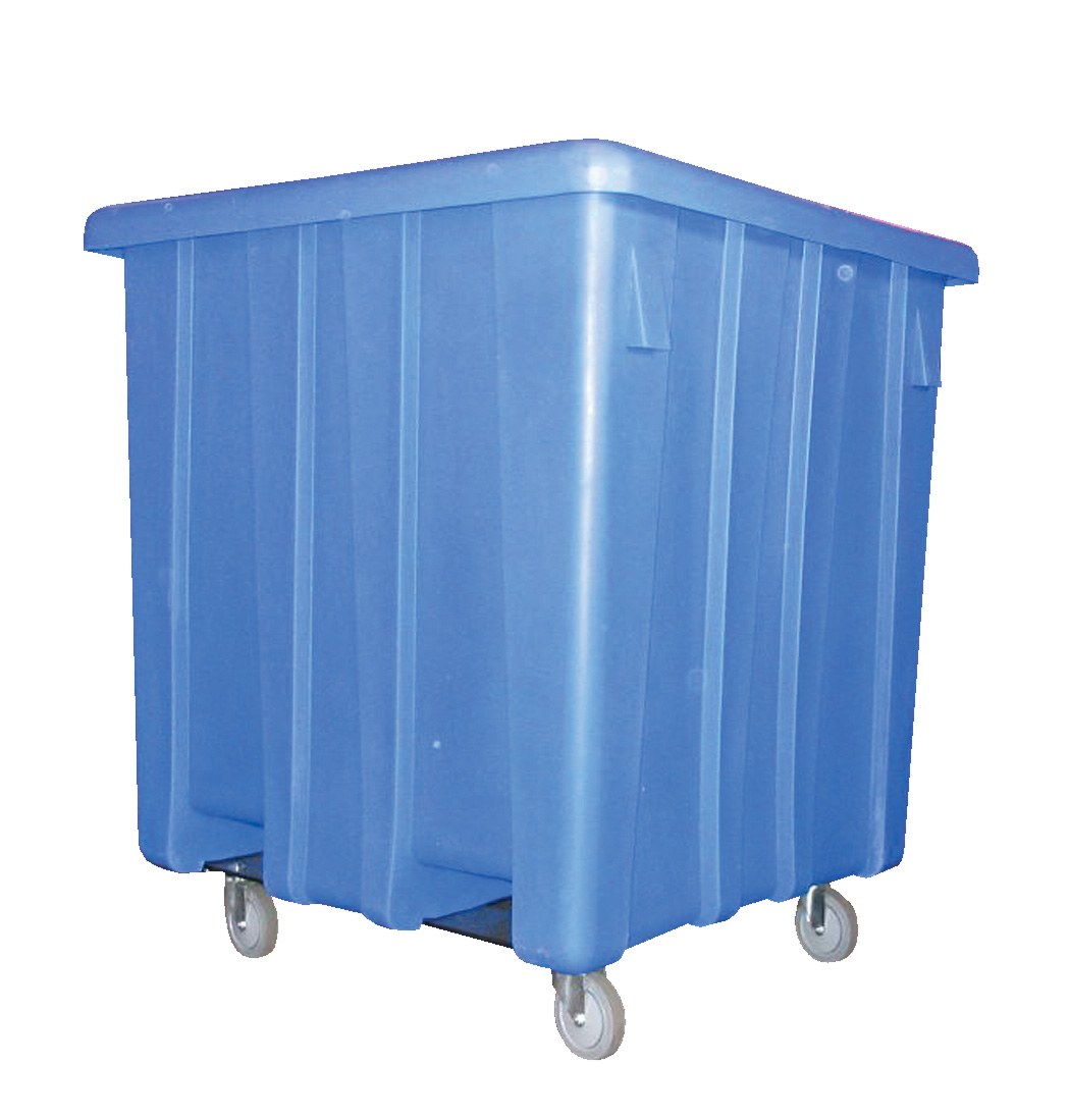 These rugged containers with lid maximize shipping, handling and storage efficiencies. These units stack three high, and safely accommodate up to 700-800 lbs. of solid, pour able, granular, and non-regulated material. Molded nesting "lugs" or "ribs" prevent units from jamming together. All are available in a wide variety of colors, and with optional permanent, molded-in or raised graphics, and logos. Caster and custom options available, contact factory. Lid Standard.