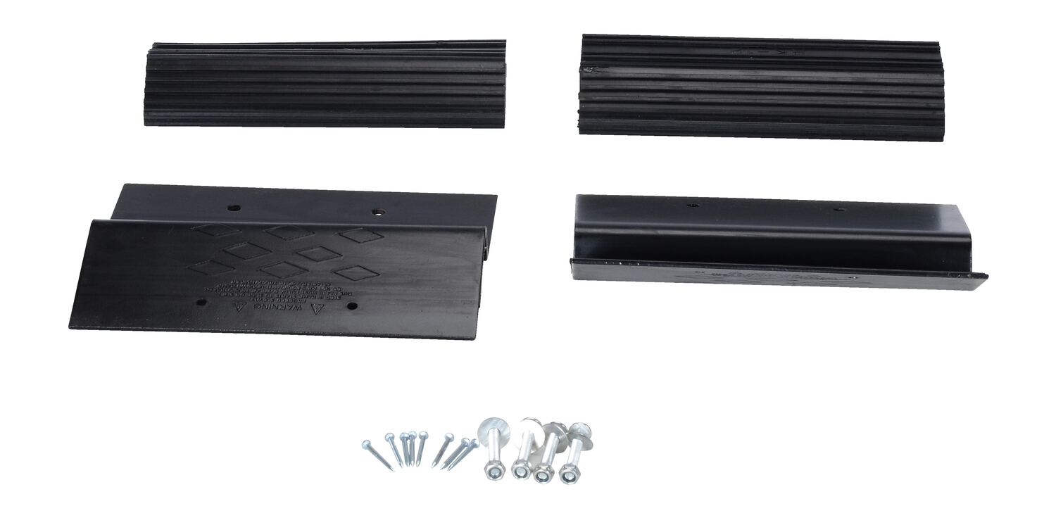 Kits allow for building wooden ramps using common lumber. Each kit includes two steel end plates and rubber bottom tips. Installation hardware is included. Drilling required for installation. Lumber/boards are not included.