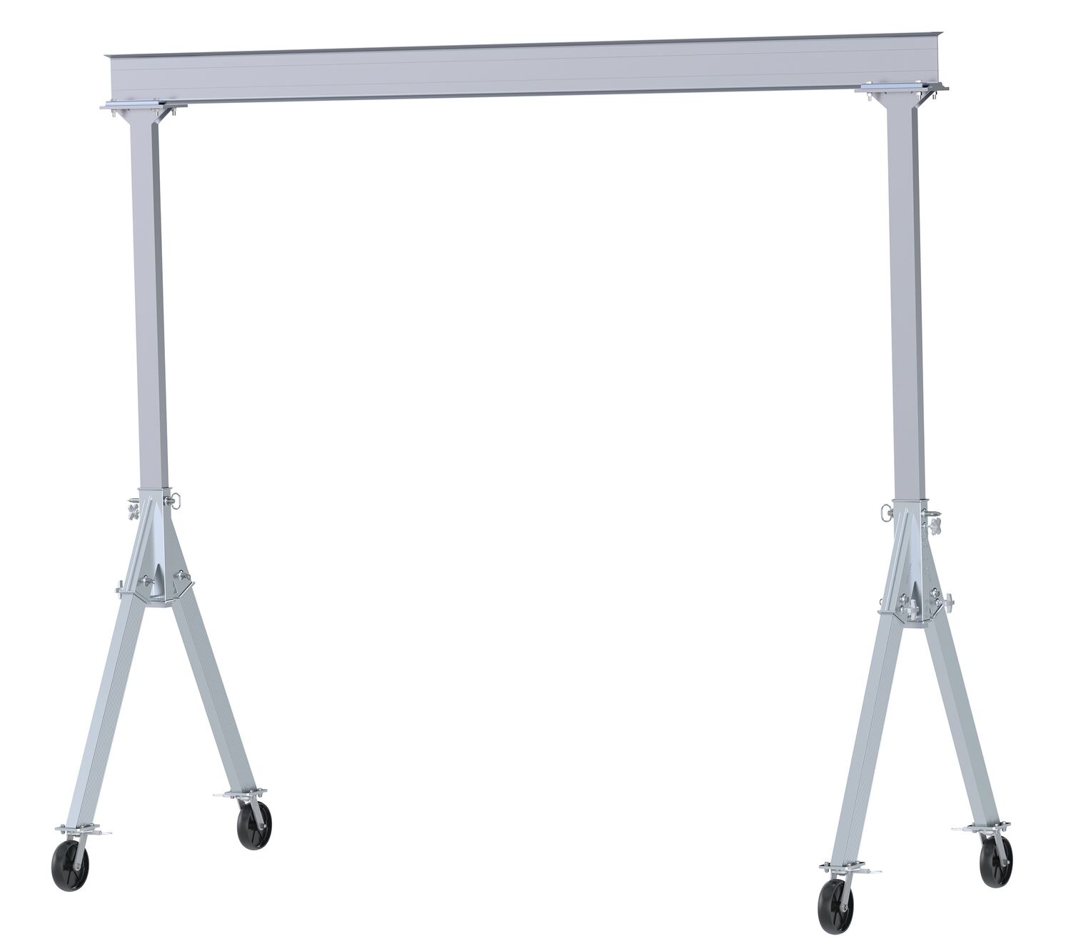 The Fixed Height Aluminum Gantry Cranes are ideal for variety of industries including maintenance and production. The aluminum design is easily manageable and can be simply assembled for immediate use. A fixed height is perfect for working in a permanent or semi-permanent environment where the surrounding seldom change. Casters provide a smooth way to transfer units when unloaded and if changing locations is needed. Unit comes standard four (4) position locking swivel casters with roller bearings (2K units have glass filled nylon casters. 4K-6K units have phenolic casters). A strong construction allows for long lasting strength through the harshest of environments. Hoists & Trollies can be ordered seperately.