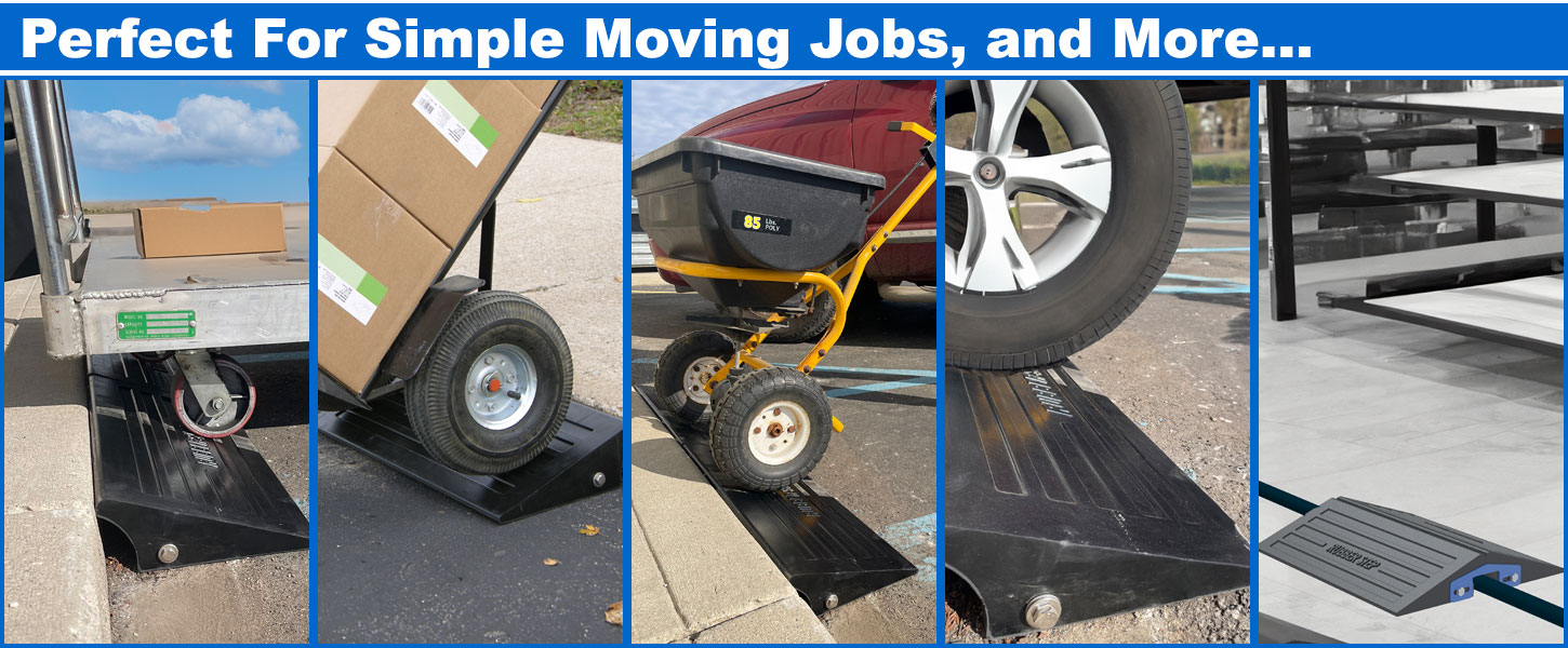 High impact ramps are perfect for a variety of work environments; postal routes, schools, hospitals, warehouses and delivery routes. These ramps make it simple to move loads onto a curb or over hoses and cables. The textured non-skid surface allows for sure footing on the incline and decline. The lightweight and completely portable unit handles hand trucks and other wheeled equipment with ease.