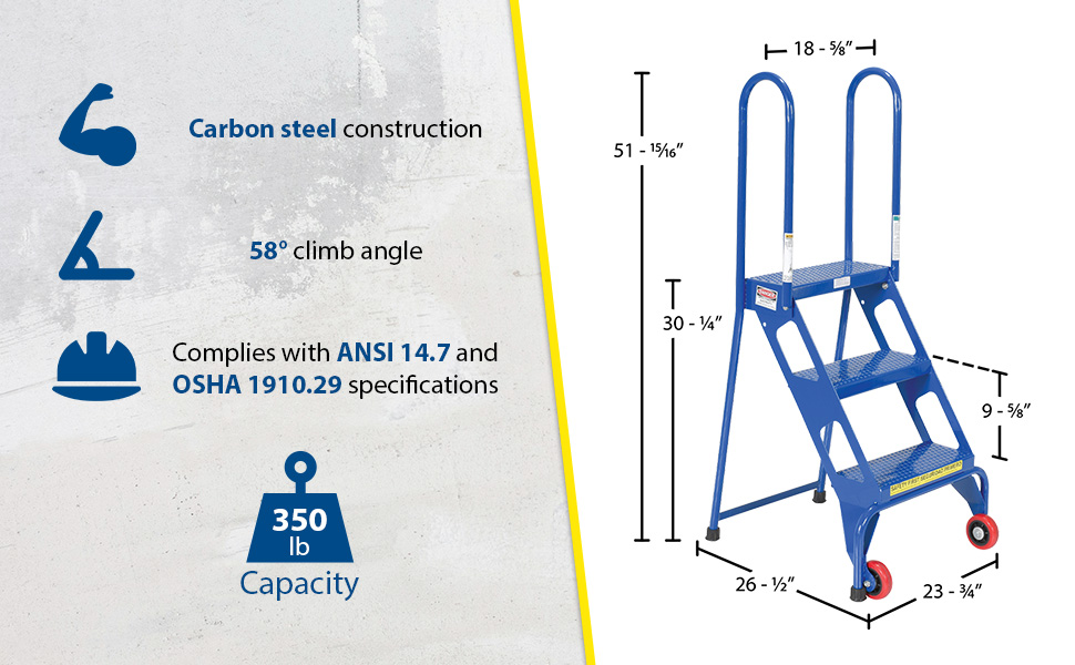 FLAD-3 FLAD-3Steel Folding Ladder with Wheels 3 Step 350 Lb. Capacity BlueUniform Capacity (lb.): 350