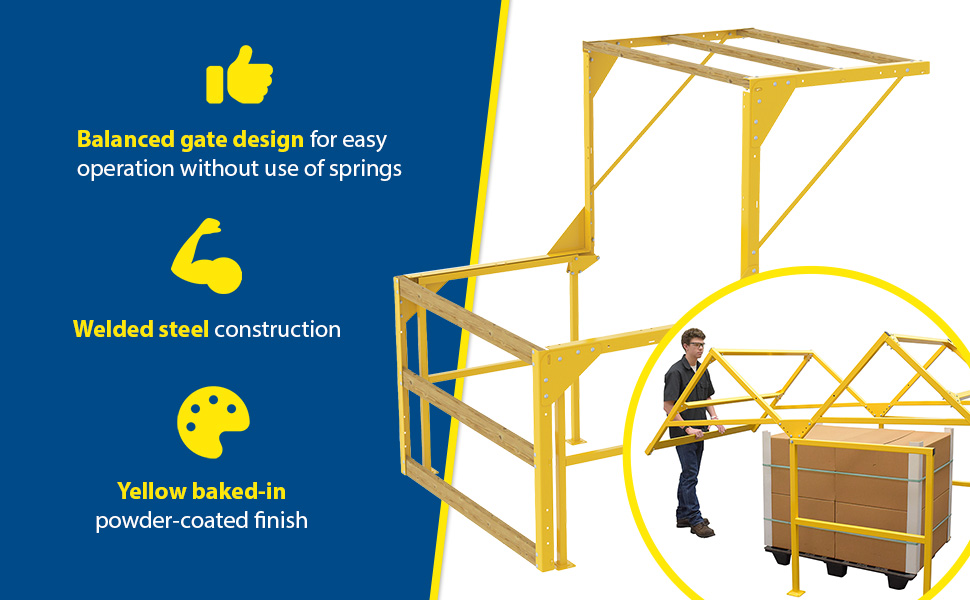 MEZZ-200-DW MEZZ-200-DWSteel Mezzanine Safety Double Wide Gate 79-5/16 In. x 108-1/2 In. x 80-1/16 In. YellowHandrail Height (in.): 42-3/8