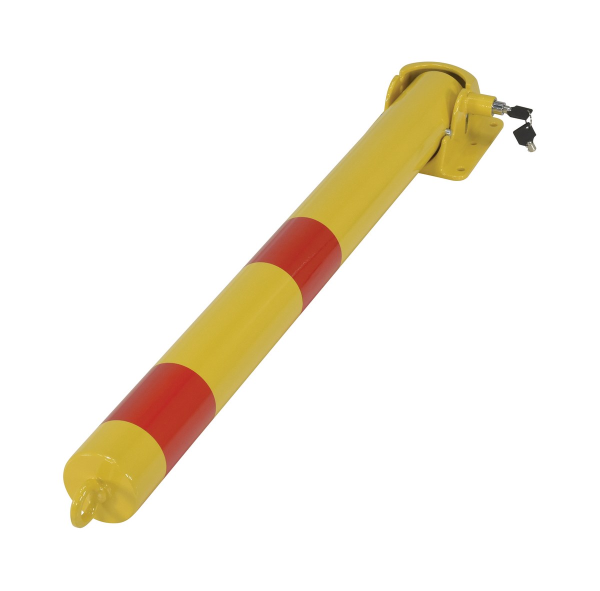 Ideal for vehicle access control. These heavy duty bollards feature integrated locking and an easy to operate cam-lock. Unit secures in open position via internal lock. Two (2) keys included. Four (4) 3/8" x 3" concrete anchors included for securing bollard to concrete. Two (2) wrap around reflectors adhere to the baked-in powder-coated toughness or stainless steel finish. The anti-tamper design and cast steel covering foot is made in a mold, therefore there are no welds. Can be used in conjunction with our Fixed Height Bollards.