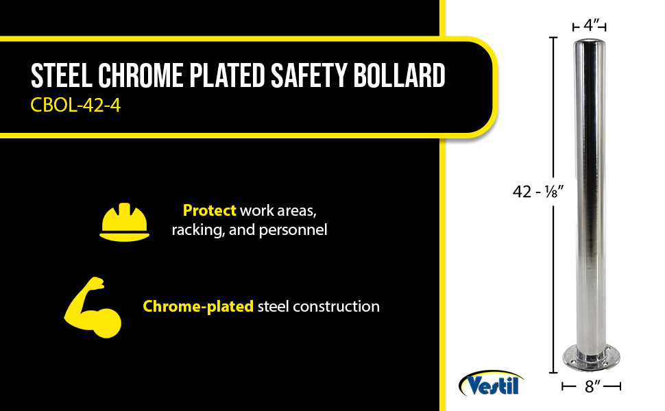 CBOL-42-4 CBOL-42-4Steel Chrome Plated Safety Bollard 42-1/8 In. x 4 In. SilverDiameter Bollard (in.): 4