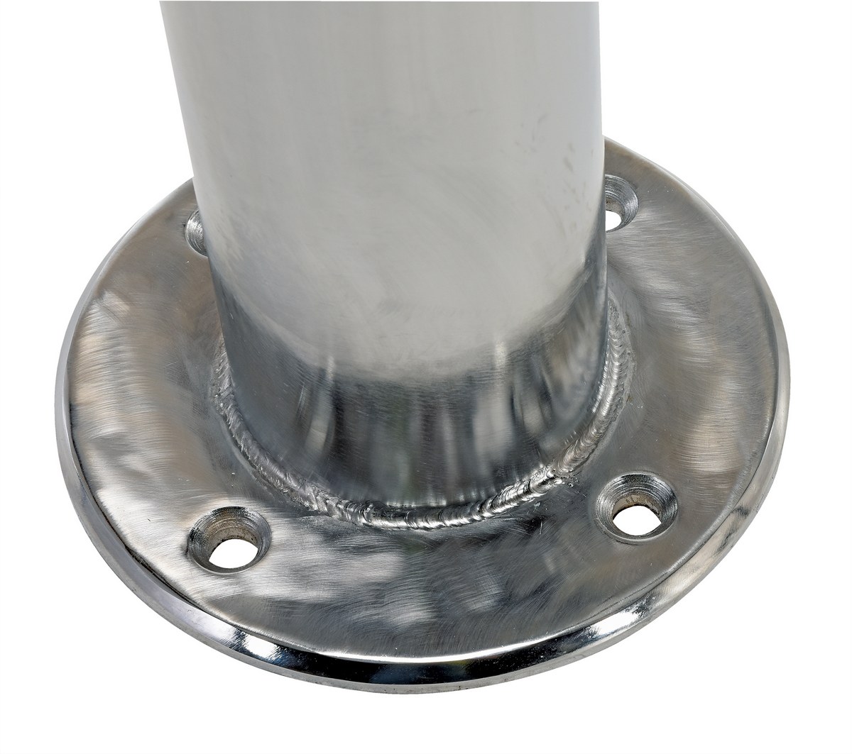 Improve the image of your facility while protecting people and equipment with this heavy-duty Chrome Bollard. Unit is made of steel and finished with an attractive bright chrome plating for a clean fresh look. Mounting hole diameter. is 1/2" x 4 holes Mounting plate outer diameter is 8" Mounting plate thickness is 3/8". Recommended for indoor use.