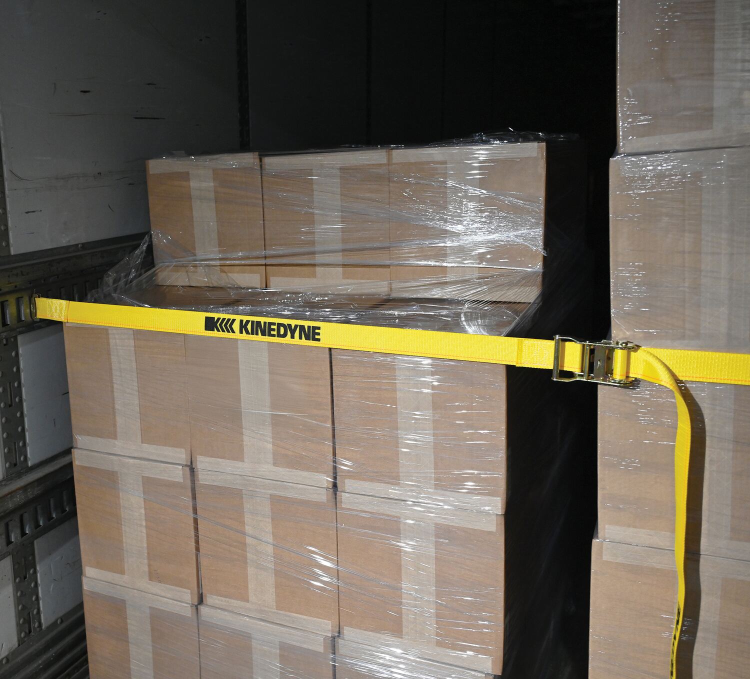 Guard against damages from slipping and shifting loads while transporting products. Spring loaded e-track fittings provide quick one-handed connection to anchor point. Both ratchet and cam buckle models tighten and release quickly. Tough strapping fabric is made of a polyester webbing.