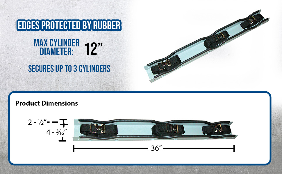 Simple design is easy to install. Simply bolt to wall and then secure cylinder with strap. Edges are protected with rubber guards on the steel units. Choose either steel or molded plastic construction. Maximum 12" cylinder diameter. For use in non-moving, static environments. Installation hardware is not included.