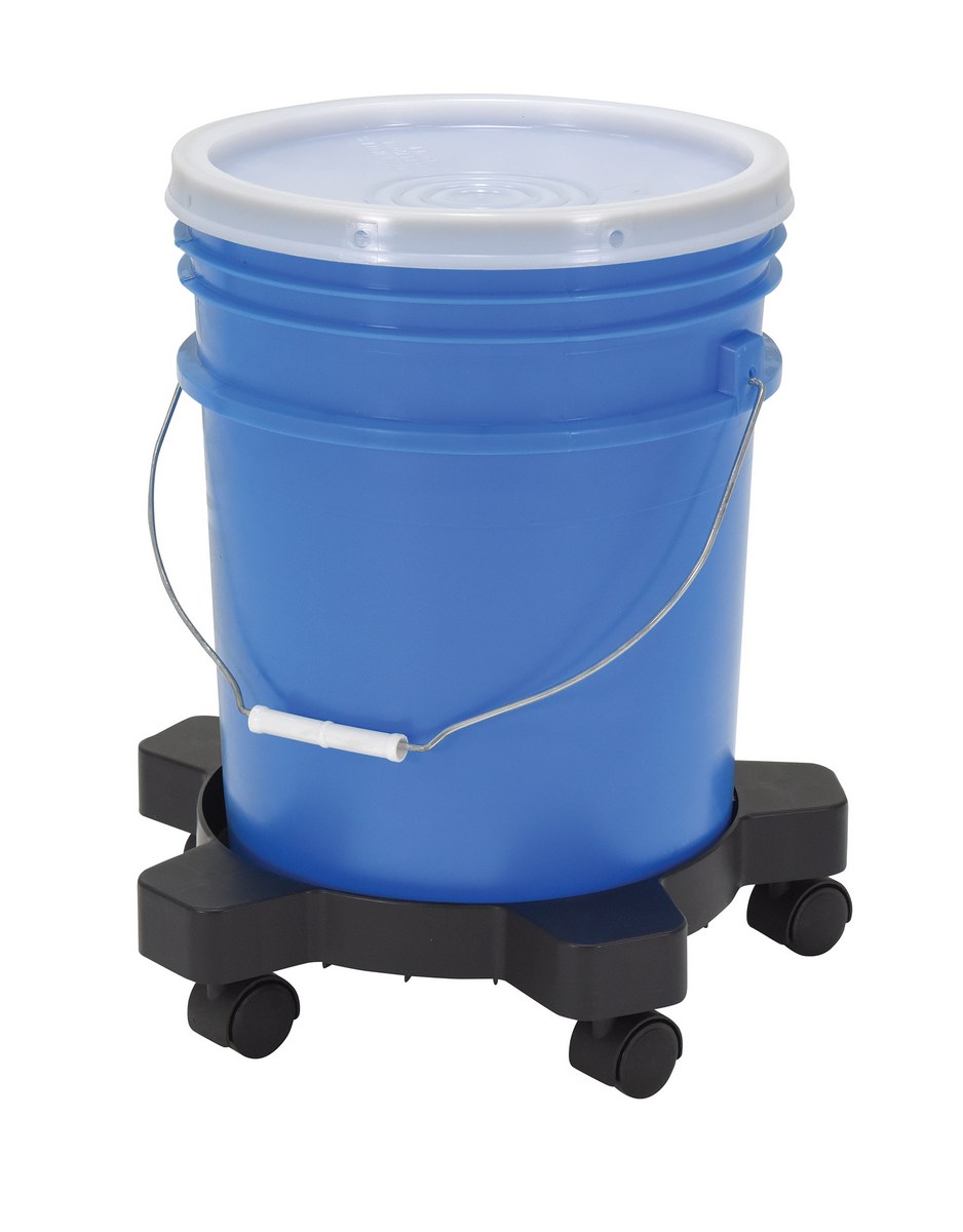 A pail dolly is a great accessory for the home or the workshop by delivering a more ergonomically friendly way to transfer products. Instead of lifting heavy pails, which can put stress on joints and muscles, this unit can be pushed and steered to the designated location. A large weight capacity and a 5-7 gallon pail accommodation, the user can efficiently move objects in a timely manner while minimizing risk of fatigue. The compact design is easily stored when not in use. Strong construction. Lightweight. Maximizes workload proficiency.