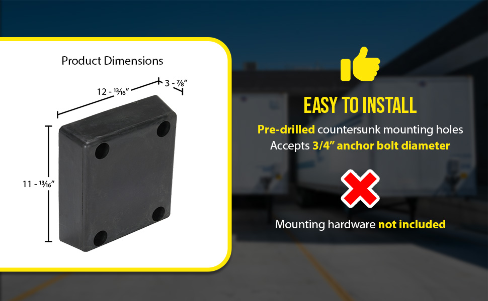 B-1224-3 B-1224-3Rubber Rectangle Molded Bumper 24 In. x 12 In. x 3 In. BlackProjection (in.): 3