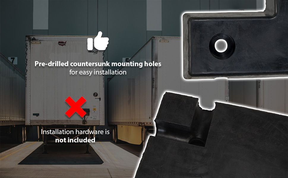 Manufactured from fiber reinforced prime rubber containing nylon and polyester. These molded bumpers are built to endure years of abusive pounding. All units have pre-drilled countersunk mounting holes for easy installation. Plastic face bumper, model B-1213-4PF, features two piece construction fully assembled and ready for installation. Installation hardware sold separately.