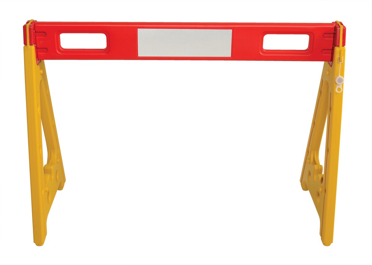Plastic A-Frame Barricade 44-5/8 In. x 19-1/2 In. x 31-3/4 In. YellowBlock aisle ways, parking spaces, or other unauthorized access areas with an A-Frame barricade. It's designed for quick set up and convenient storage. The A-Frame barricade can be filled with water or sand for increased stability. Features three (3) reflectors. Easy to assemble/disassemble and store. Anchoring is easy with pre-drilled holes.