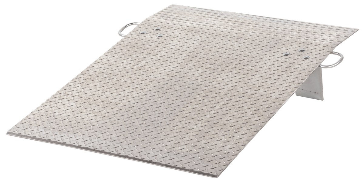 Aluminum Hand Truck Dock Plate 36 In. x 48 In. 700 Lb. Capacity SilverThis Aluminum Hand Truck dock plate is designed for use with two (2) wheel hand trucks. It is a convenient, safe, and easy way to access loading docks from trucks. This dock plate is lightweight and easily transported by just one person. The tread plate surface ensures skid-resistant safe traction and the locking legs secure the plate for safe loading and unloading. Complete with bolt-on zinc plated carrying handles and locking legs.