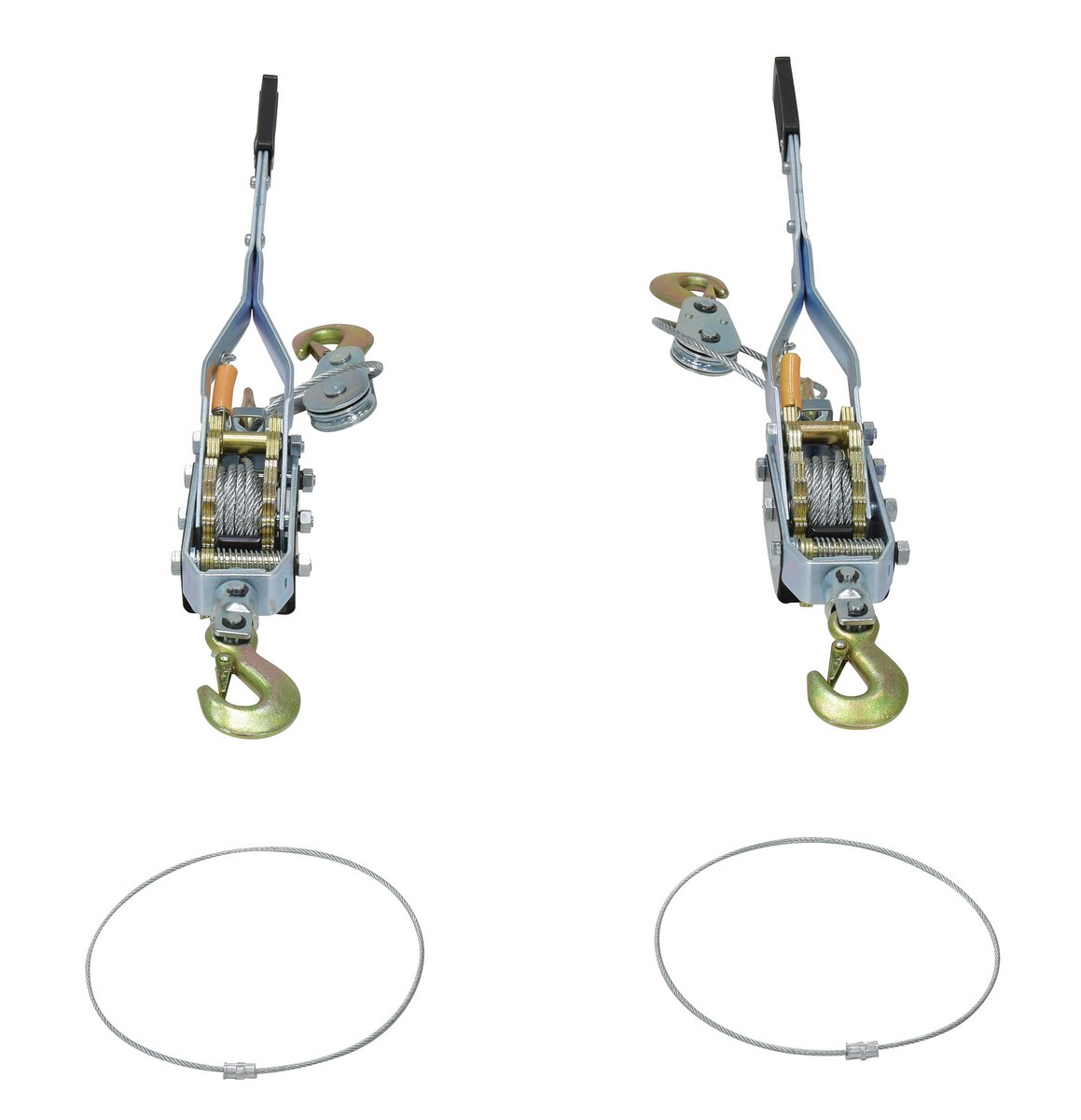 Adjustable come along kit for an Aluminum gantry crane includes, two (2) come-a-longs (2) cables for height adjustment (not for lifting). Compact design for storage. Diminishes manual labor.