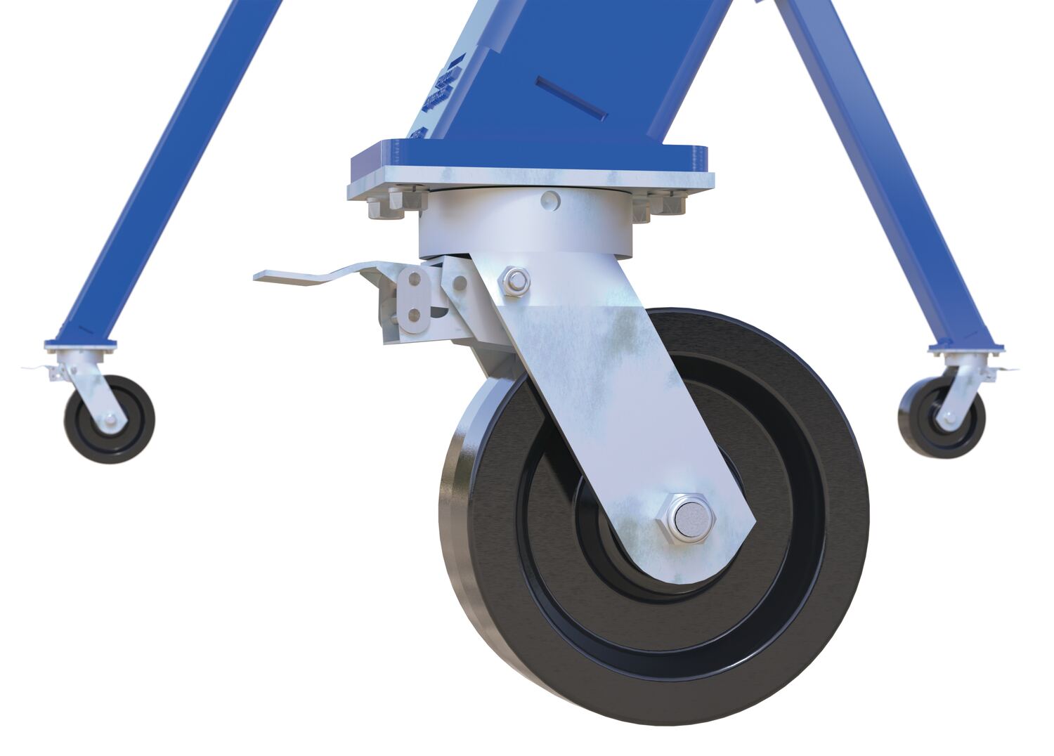 Steel Adjustable Height Gantry Crane with Total Locking Phenolic Casters 10 Ft.Wide x 16 Ft. Max Usable Height 6,000 Lb. Capacity BlueThe adjustable height steel gantry crane is designed for transporting and positioning materials along the beams length. The cranes beam height can be adjusted to better conform to the working conditions making it both ergonomically friendly and cost effective. Facilitate easy mobility from one area to another with total locking casters. Height is adjustable in 6" increments. Do not move units while loaded. Hoist and trolley can be ordered separately. A painted blue finish protects the unit from rust. Designed for semi-permanent or permanent applications.