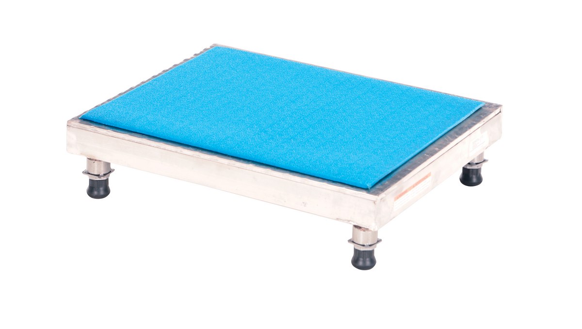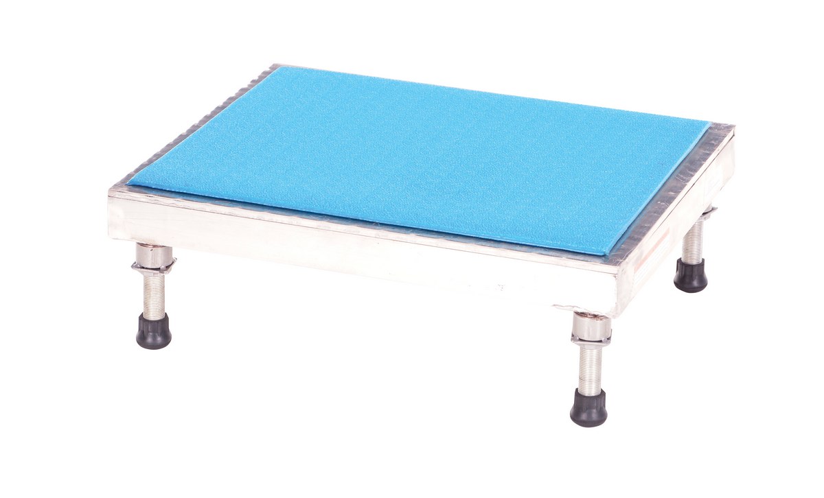 Aluminum Adjustable Work-Mate Stand 24 In. x 19 In. x 5-3/4 In. 500 Lb. Capacity SilverThe adjustable work-mate stand minimizes fatigue by elevating workers to heights that are comfortable and ergonomically correct. Especially useful when multiple shift employees operate the same piece of machinery. The ergonomic matting deck style provides comfort for the operator who stands all day. The height of each leg can be adjusted individually to ensure proper working height.