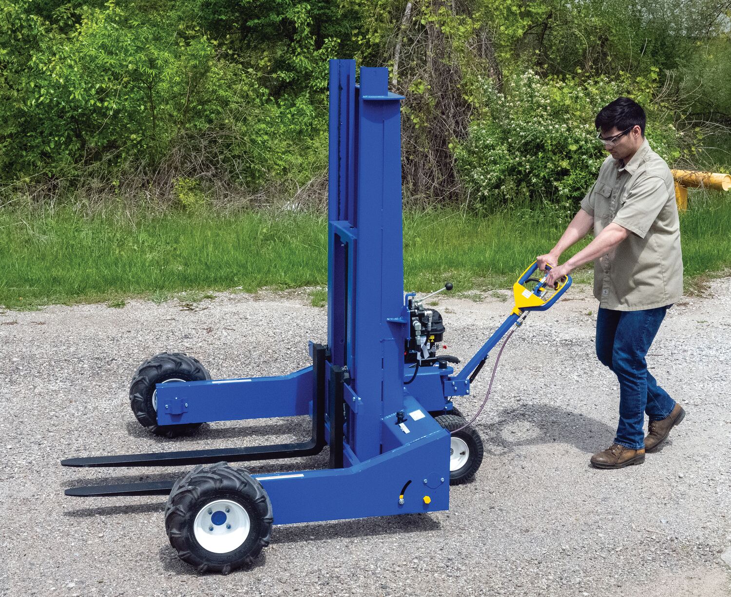 Steel 190CC Gas Powered Drive and Lift All-Terrain Pallet Truck 48 In. Long Adjustable Width Forks 3,500 Lb. Capacity Blue